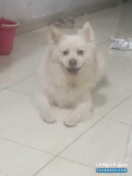 كلب ذكر من نوع سبيتز يباني أليف والطاعة التامة