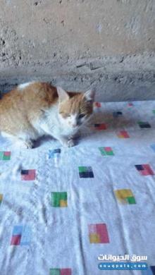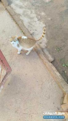 قط للبيع دو أعين برتقاليه ولون ابيض وبرتقالي